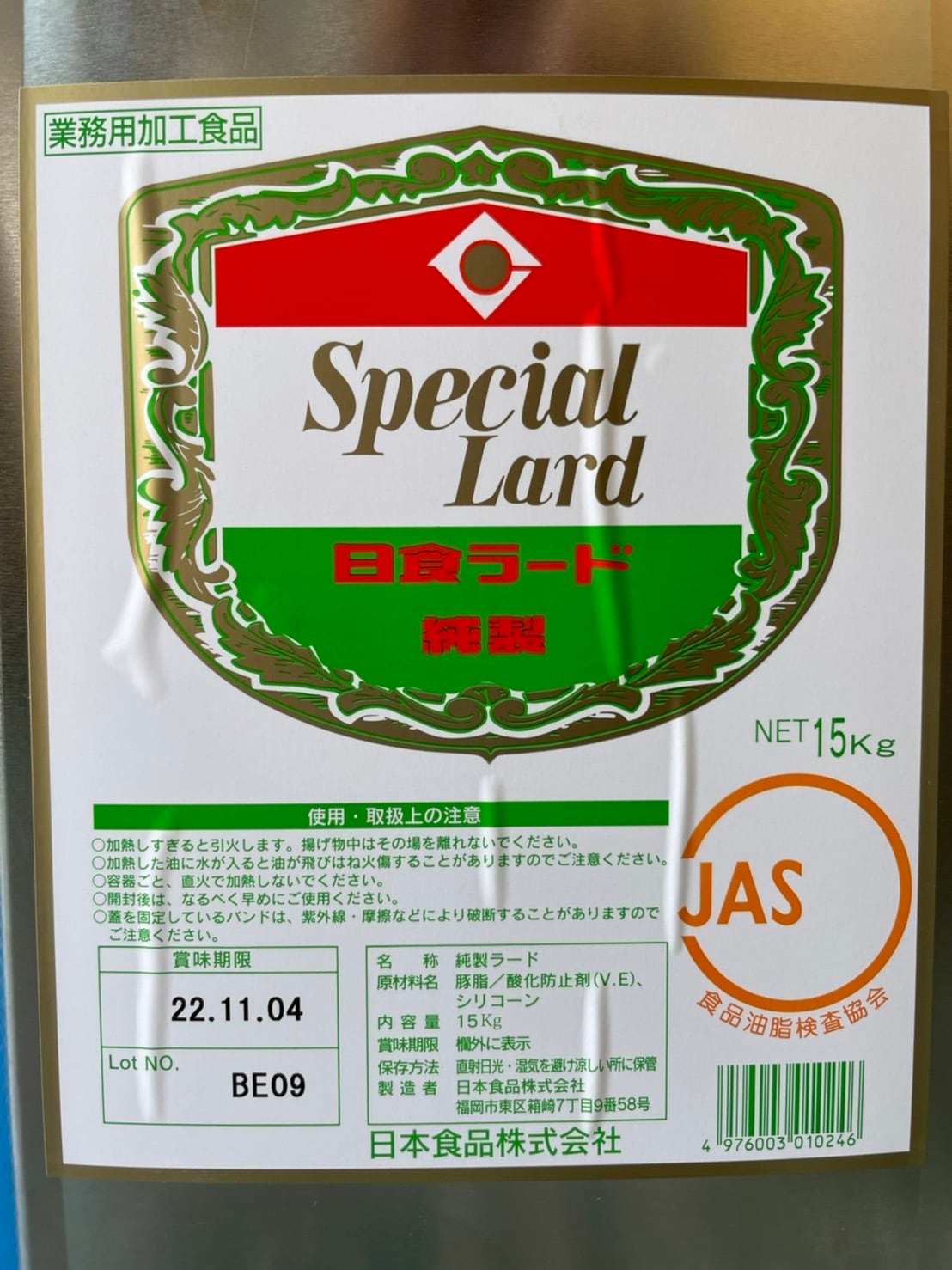 Special Lard 日食ラード純製 一斗缶(15kg)